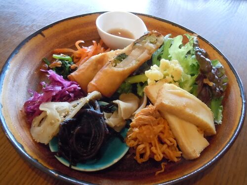 姫路市と鳥取市を繋ぐ国道29号線 鳥取市の手前の町 八頭町にある産直市場「八頭ふれあい市場」内にあるカフェでランチしてきました☕ 地元の食材や鳥取市内のコーヒー焙煎所のコーヒーなどを使ったドリンクやメニューを提供されてます☕ 産直市場と直結して…