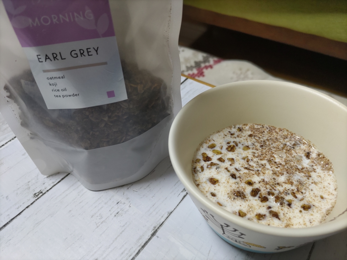 アールグレイのグラノーラをミルクでいただきました✨