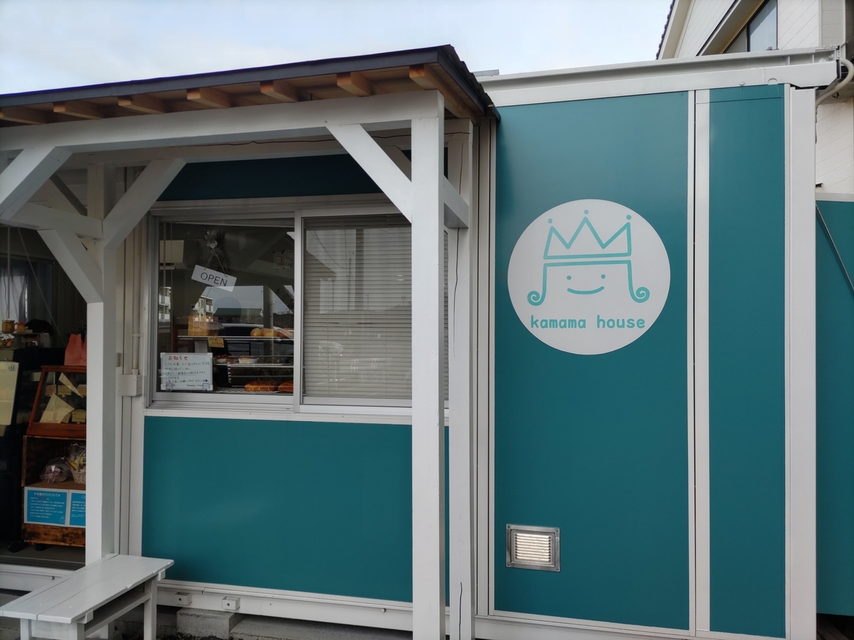 日本海の美しい色と同じ色のプレハブのお店🍞
